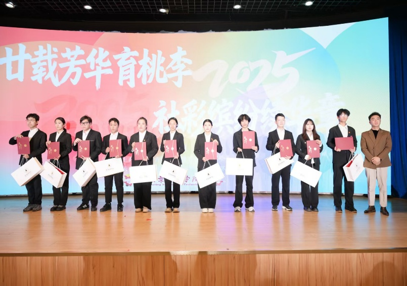 校团委周秋宇老师宣读《关于表彰燕京理工学院2025-2026年度“活力社团及先进个人”和“社团管理部优秀指导老师及负责人”的决定》,勉励受表彰的集体与个人珍惜荣誉,继续在社团建设中发挥引领作用。与会老师为获奖代表颁奖,以肯定与鼓励致敬每一位深耕社团、默默付出的师生。