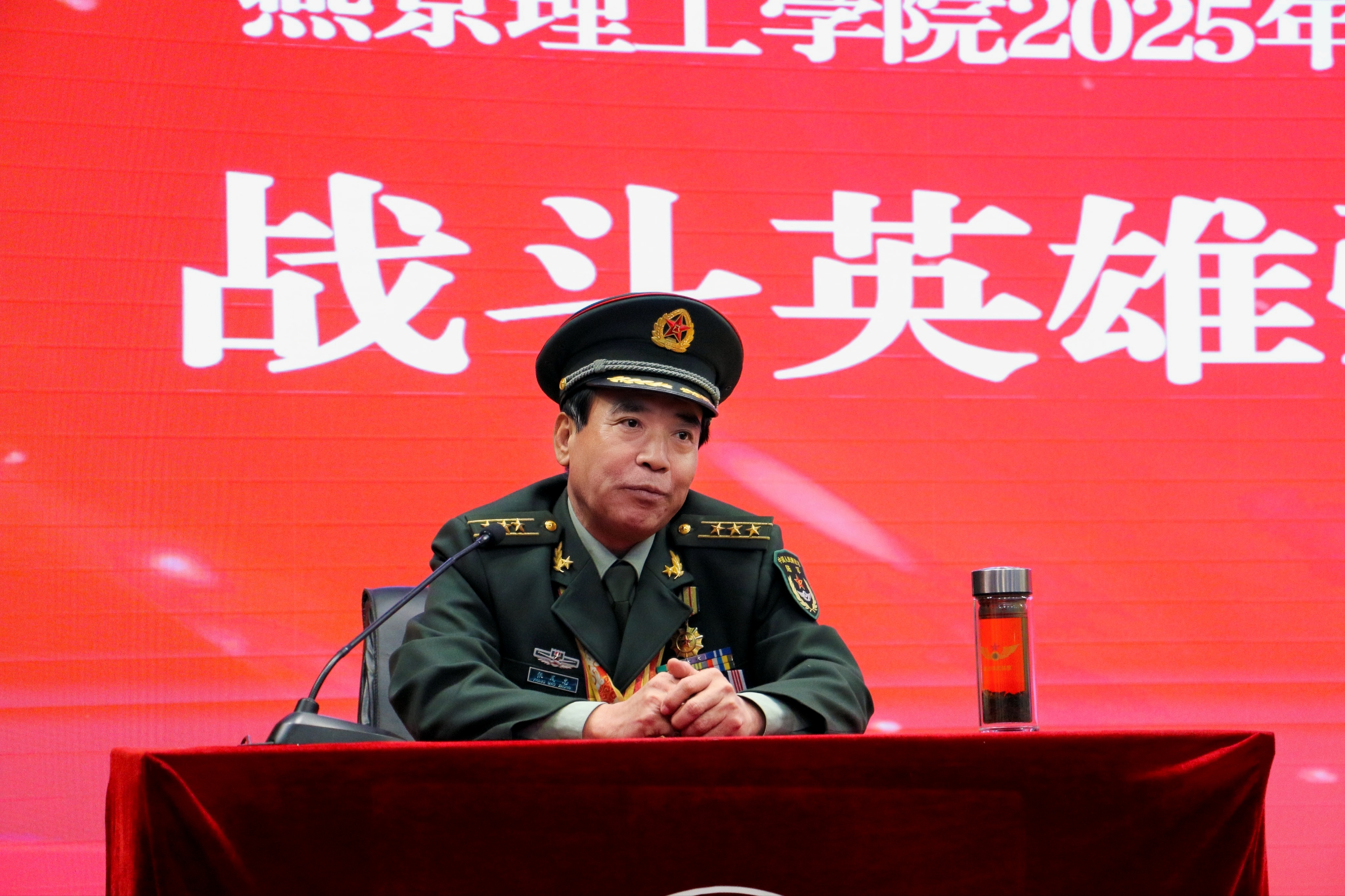 随后,国家一级战斗英雄张茂忠同志作事迹报告。张茂忠同志是原27军80师240团3营8连的“大胡子班长”,在边境防御作战中,他与战友们坚守“钢铁阵地”,英勇战斗,身负重伤仍坚持指挥,所在连队被授予“坚守英雄连”荣誉称号,个人被中央军委授予“战斗英雄”称号。报告中,张茂忠同志动情提及,电影《长津湖》中“水门桥”战斗英雄的原型,正是来自他所在的老部队。他以质朴的语言、真实的细节,深情回顾了那段烽火连天的岁月,生动诠释了革命军人对党忠诚、不怕牺牲、保家卫国的崇高精神。