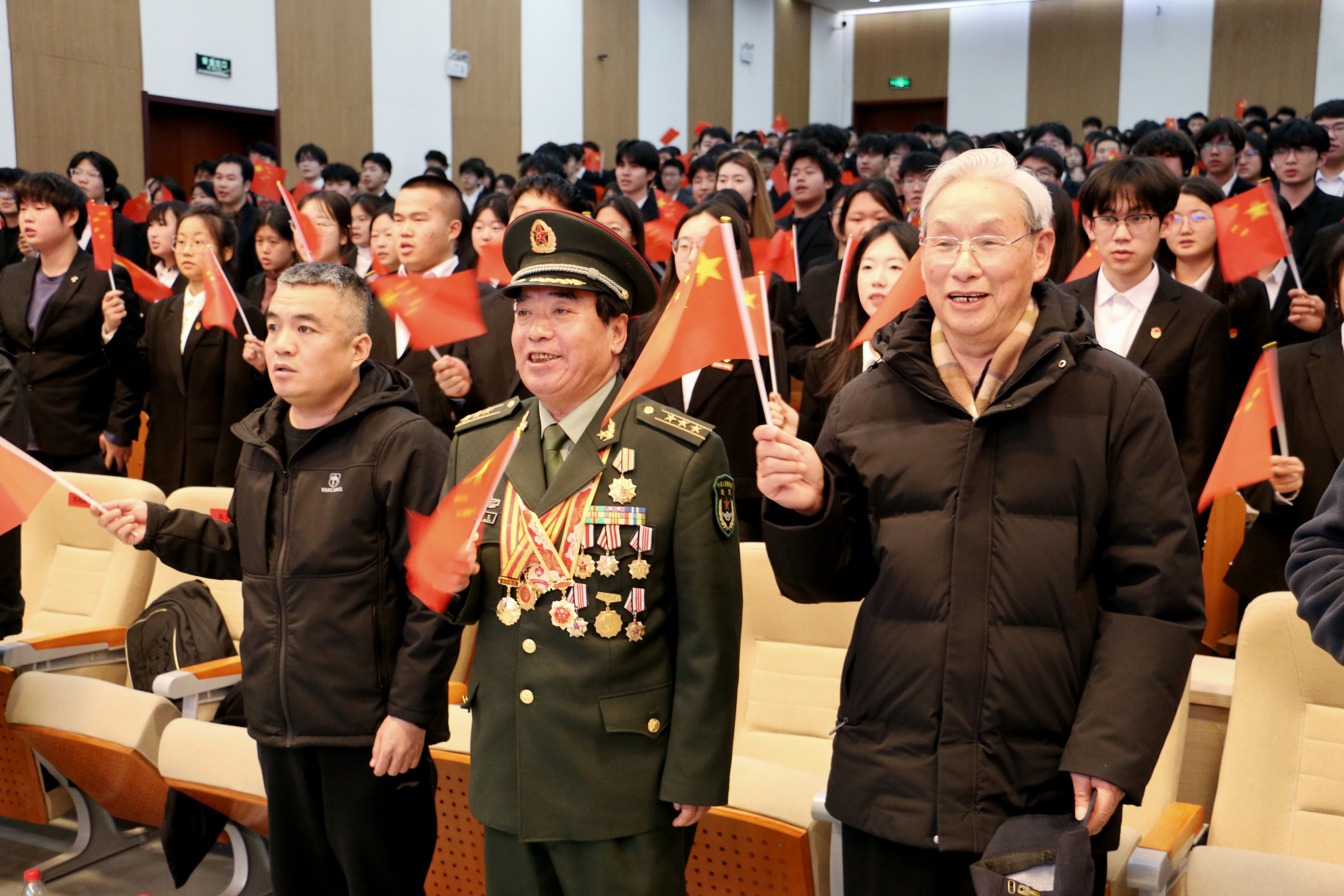 活动最后,全体人员共唱《歌唱祖国》,激昂嘹亮的歌声回荡会场,奏响了爱国乐章,凝聚了奋进力量。与会领导、嘉宾与学生干部代表合影留念,共同定格这一意义非凡的时刻。