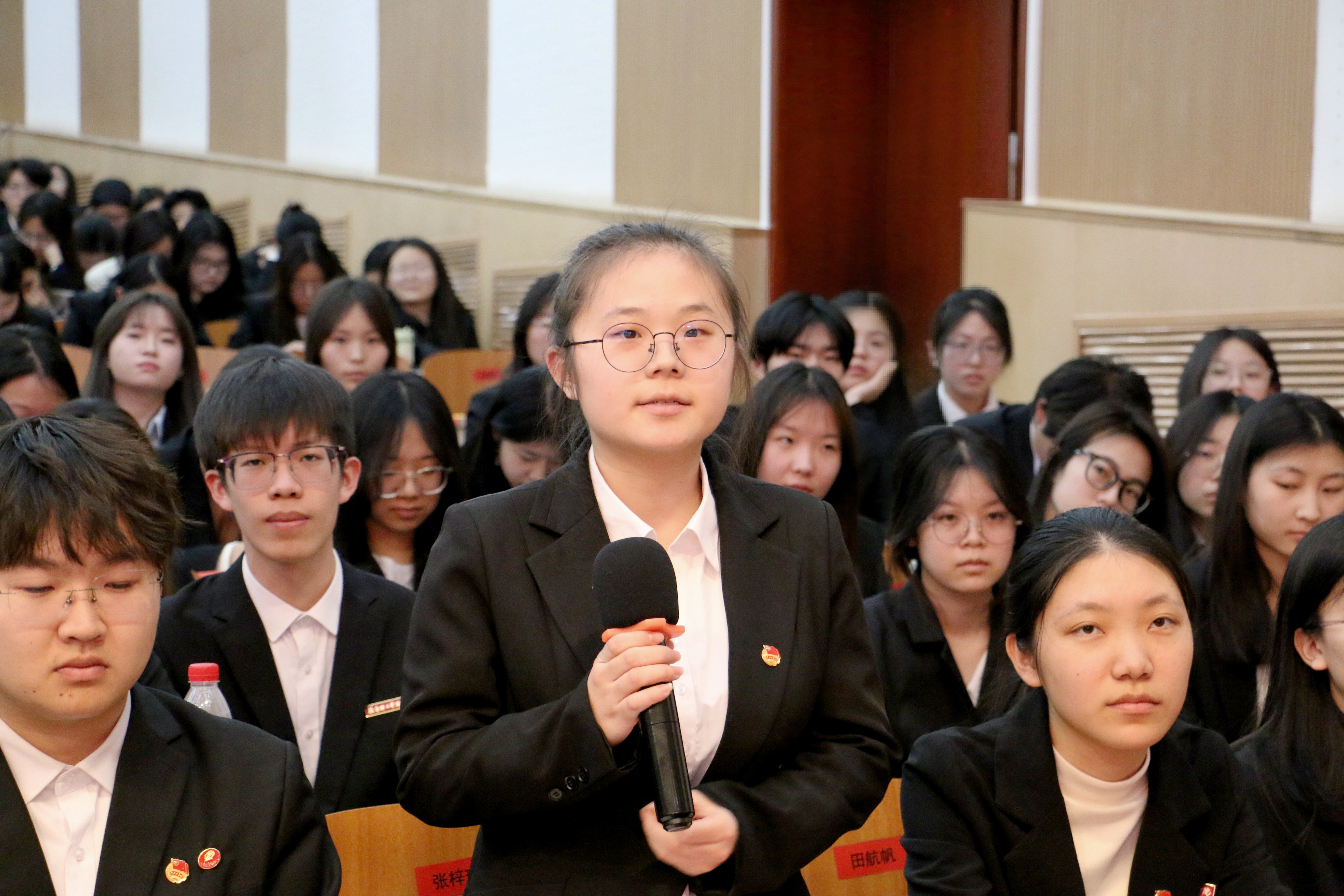 在互动交流环节,学生们踊跃提问,与英雄前辈面对面交流,进一步感悟英雄情怀,汲取奋进力量。为勉励学子,张茂忠同志、北京安立军休所老首长代表史振杰大校、西柏坡儿女联谊会会长刘鹏共同向学生代表捐赠了图书《血染的风采》,寄托了前辈对青年一代传承红色基因、续写时代华章的殷殷期盼。