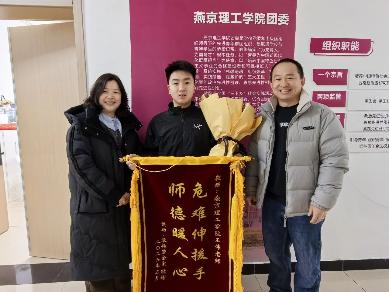 近日,燕京理工学院王伟老师在下班途中遇到群众突发疾病紧急呼救,迅速反应、科学施救,全程守护直至救护车抵达,以实际行动诠释了退役军人的责任担当与人民教师的仁爱初心。3月20日,当事人及家属专程来到学校,将一面绣有“师德暖人心,危难施援手”的锦旗亲手送到王伟老师手中,以此表达对救命恩人的深切感激之情。