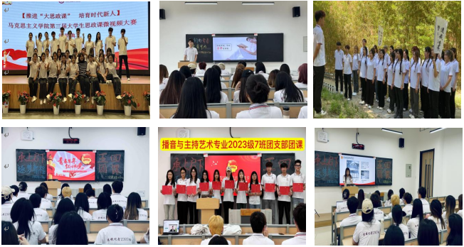 结合播音专业特色,支部组织开展“红色经典诵读”“思政微宣讲”等品牌活动,推动思想教育入脑入心。在第三届“我的思政课”评选中,支部组织30名同学受邀共同参与展演,荣获校级二等奖;在第五届“我的思政课”评选中,支部同学作品获得校级一等奖2项,占一等奖总数的1/3,实现专业能力与思政教育的有机融合。在此过程中,1名团员获评校级“优秀共青团员干部”,2人获评校级“优秀共青团员”,1人入选2025校级“青马工程·火炬计划”培训班。